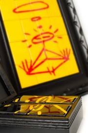 Meditator epoxy resin finished magnetic wooden tiles over vinyl. 13"x18" The meditator is an interchangeable painting, where depending on your mood and preference you can actually remove the painting and change it with a separate set of tiles located in a custom box you can set near or under the painting itself. You can also mix the 2 sets of tiles however you see fit to have a 2 tone painting.(see video) $800.00 | |